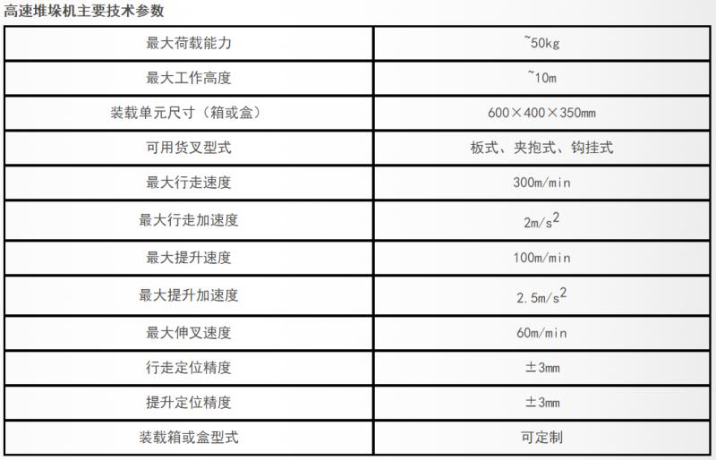 堆垛機(jī)是自動(dòng)化立體倉(cāng)庫(kù)中最典型的入出庫(kù)運(yùn)輸設(shè)備,是自動(dòng)化立體倉(cāng)庫(kù)特征標(biāo)志。運(yùn)用這種設(shè)備,立體倉(cāng)庫(kù)的高度通??山ㄔO(shè)為10~25m之間,最高可達(dá)40m。堆垛機(jī)的主要用途是在立體倉(cāng)庫(kù)的貨架巷道間來(lái)回穿梭運(yùn)行。將位于巷道口的貨物送入貨格?;?qū)⒇浉裰械呢浳锶〕鲞\(yùn)送至巷道口。與貨架系統(tǒng)、輸送機(jī)系統(tǒng)、穿梭車系統(tǒng)等庫(kù)用設(shè)備及WMS、WCS、現(xiàn)場(chǎng)測(cè)控系統(tǒng)組成自動(dòng)化立體倉(cāng)庫(kù)。